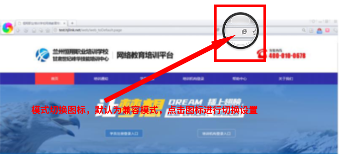 用360极速浏览器打开学习平台,找到模式切换图标并点击进行切换。